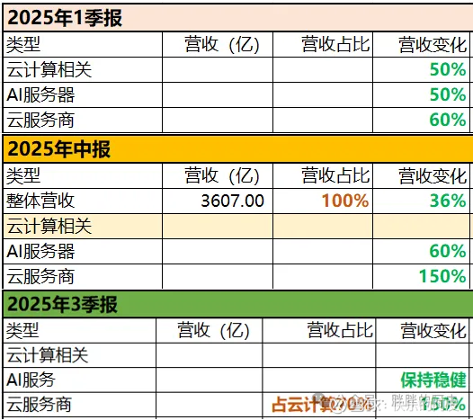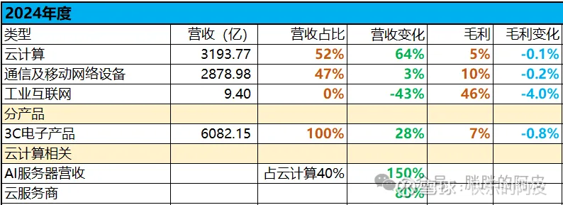 公司正式公告的数据不多,要等2025年年报会比较详细一些,从相关数据中也可以看出云服务商的增长非常快,也就是北美那几家云服务商的资本开支非常大,而且从最近北美厂家的公告可以看出来,谷歌、亚马逊等资本开支未来还是会非常大,对于云厂商,资本可能认为并不是好事,但是对于工业富联等厂商来讲,这绝对是大利好;