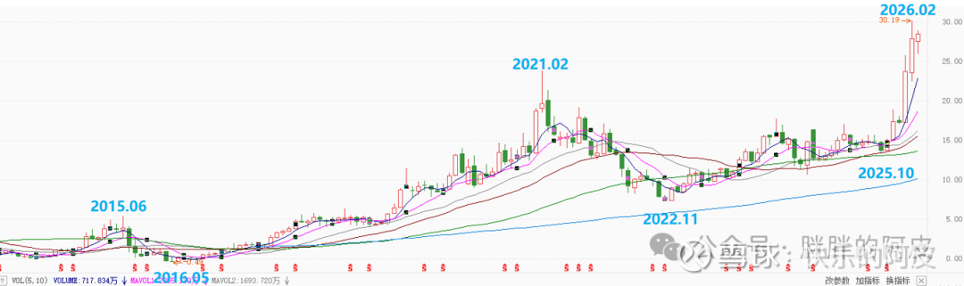从全周期来看,2021-2022年那波进行了比较大的回调,其他时间基本都在上涨中,2025年10月开始正式快速启动,创了历史新高;