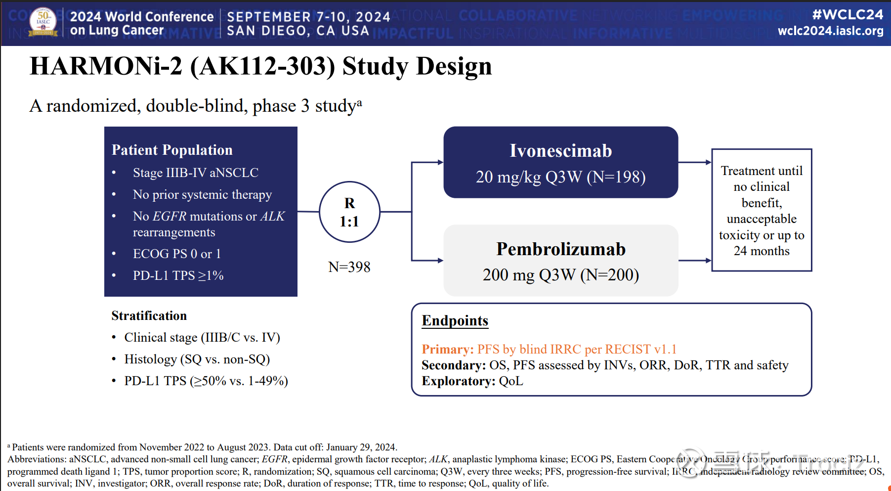那么我们回看下,2024世界肺癌大会上H2发布的数据来看,当时的数据截止时间是2024年1月29日。