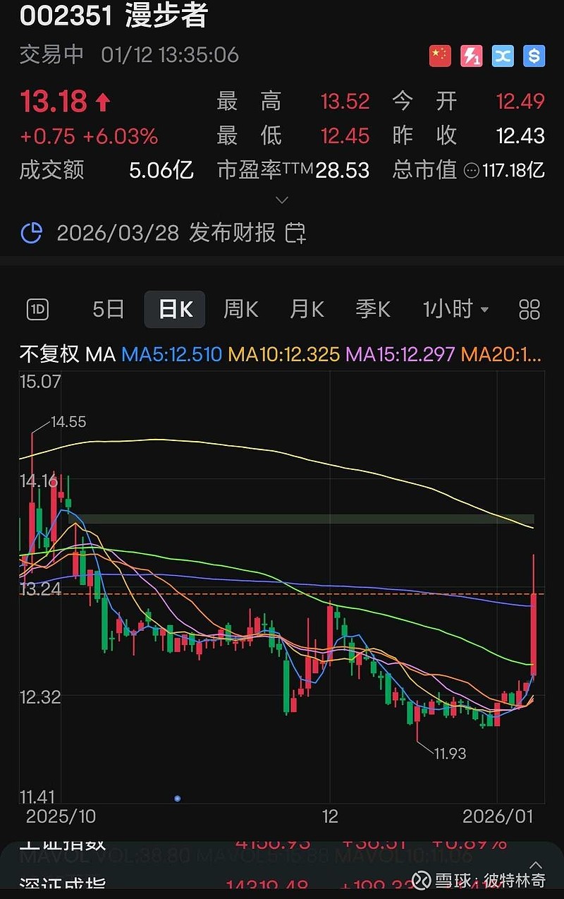 (002351)报13.18元,涨幅6.03%,创60日新高,成交活跃(换手率7.45%,成交额5.06亿)。