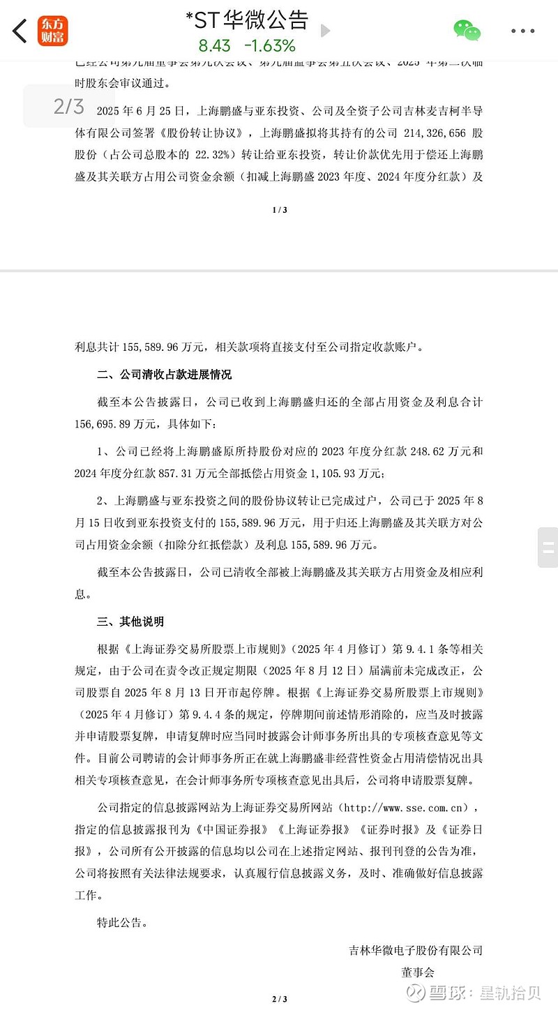 $*ST华微(SH600360)$ 再调整一下下就可以,关注中。8.15日收到偿还资金占用15.5亿,公司每年的财务费用比较大的,收到的钱可以减少营业成本,到9.30一个半月,再加上收到的1556万利息,三季度净增利润应该有2000万。去年同期3400w,半年报盈利1.07亿+2000w,即使不考虑三季度利润增长,三季报业绩应该在1.6亿以上。