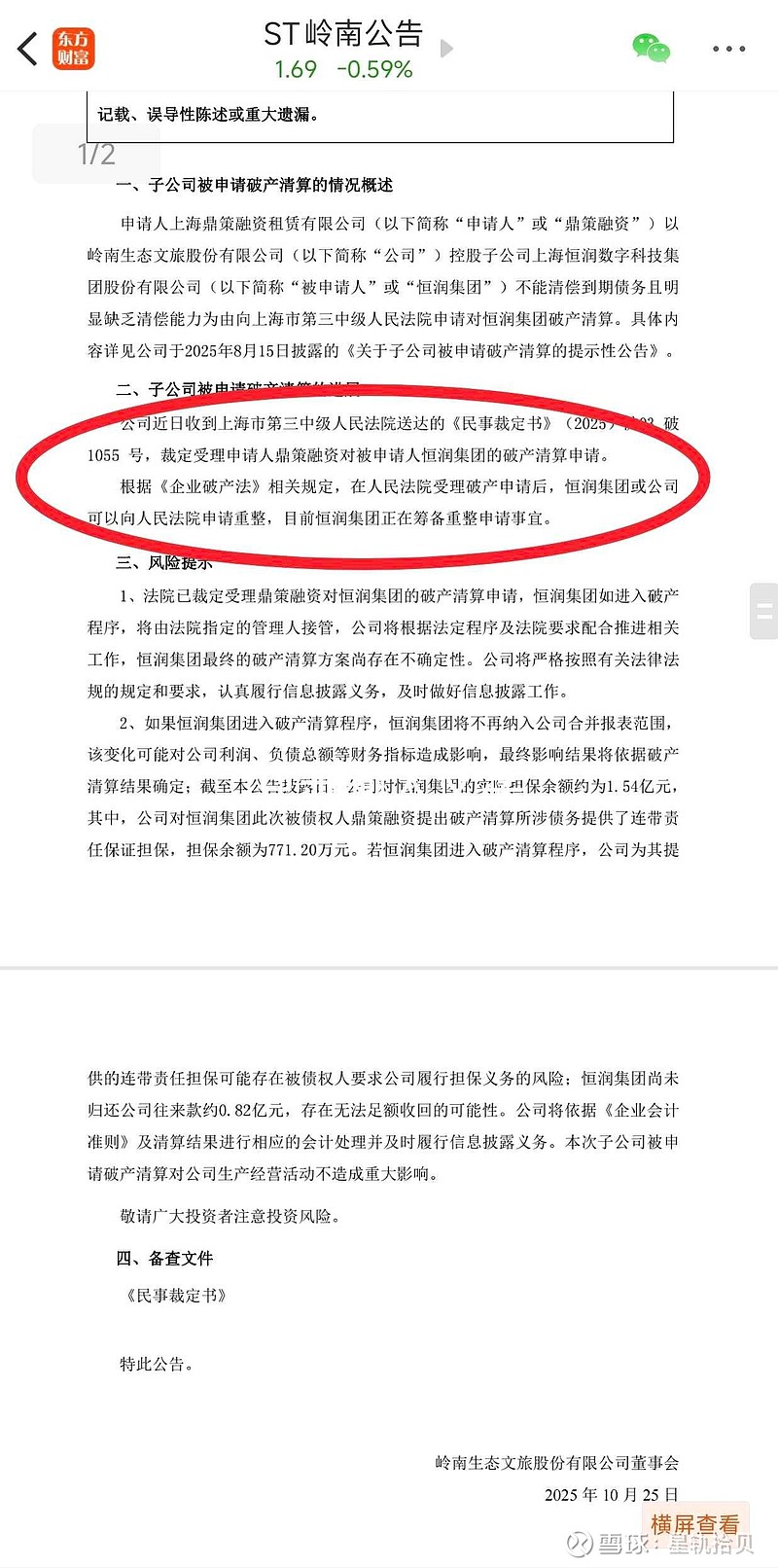 以前的公告岭南确实说要申请重整,10.25日的,并不是瞎说的。