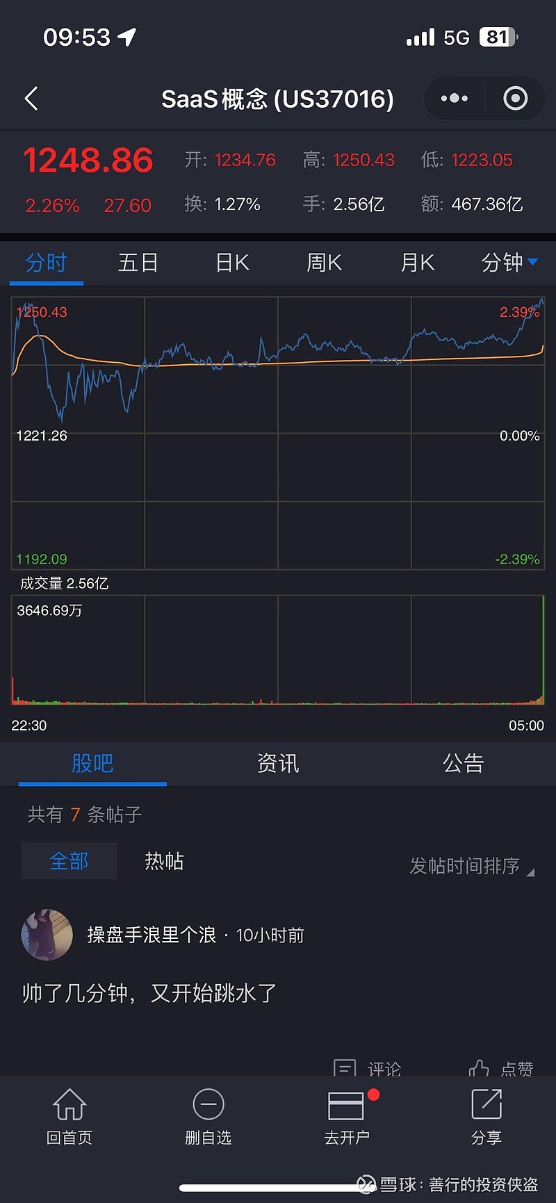 昨夜美股saas概念 反弹了 周一汉得安全 应该高开