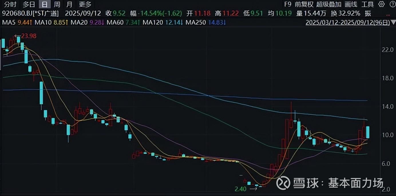 当然了,前述的前10大流通股股东,也是截至6月底的数据了,等到9月底宣告退市,*ST广道在第3季度里的换手率总计高达815.19%,股东名单不知换了几轮了呢。6月底的主要股东中,有谁成功跑掉了,又有哪些资金被骗入坑,可能就是另外一番故事了吧。