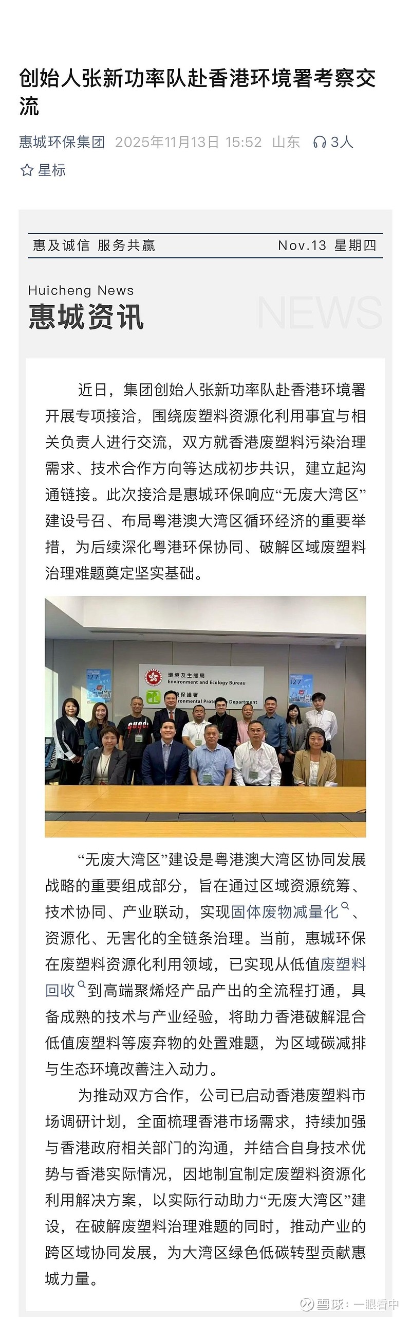 创始人张新功率队赴香港环境署考察交流