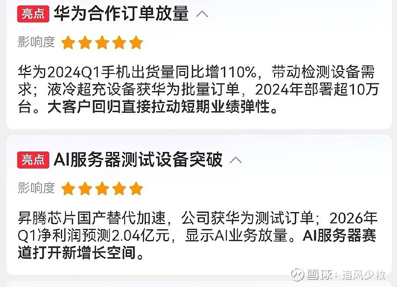 昇腾芯片国产替代加速,公司获华为测试订单;2026年Q1净利润预测2.04亿元,显示AI业务放量。AI服务器赛道打开新增长空间。