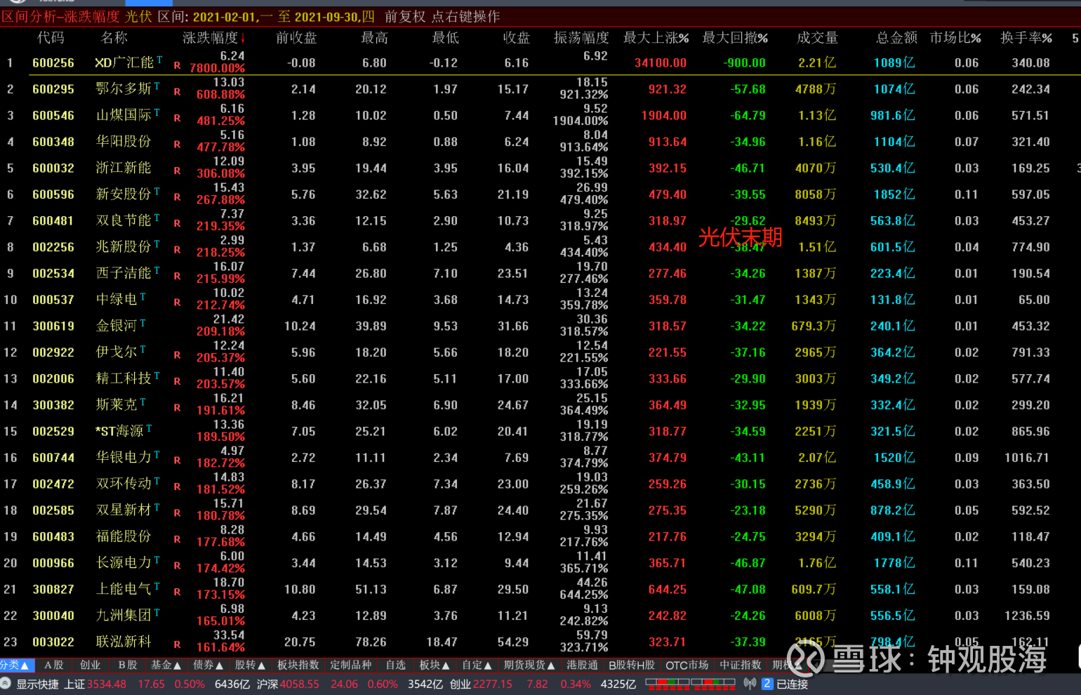 光伏板块末期,202102月-202109月