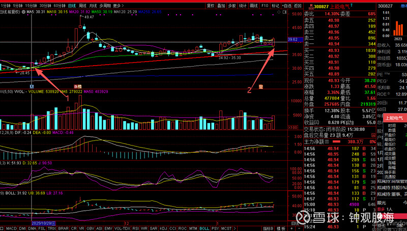 ,箭头1所指处,2025年三季报业绩不达预期,箭头2所指处,高管减持。