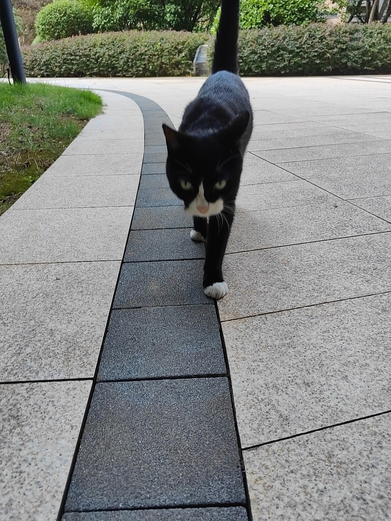 几个月前在小区散步,偶然遇到一只"黑猫",开始我是不知道它是外面的野猫,还是别人家出来暂时迷路的,还是被业主永久遗弃的,所以并没有多在意。但是呢,我接连一周都看到这个猫在白天晚上小区的步道和树丛里面出现,我意识到:这个猫应该是一个没有家人和主人的猫了