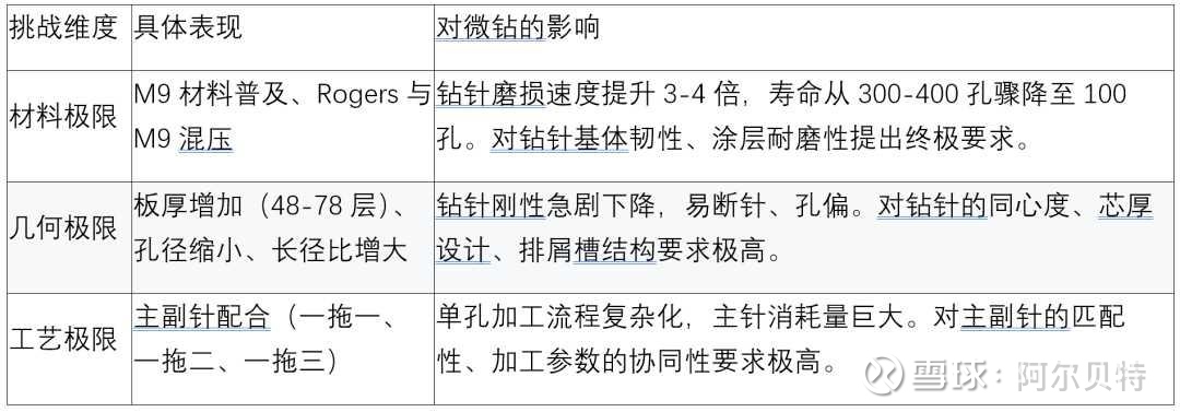 GB300(2025-2026年主流):标志着M9材料在AIGPU主板上的普及化。M9相较于前代M8材料,在介电性能上更优,但其硬度和脆性显著增加,对钻孔加工的挑战呈非线性上升。