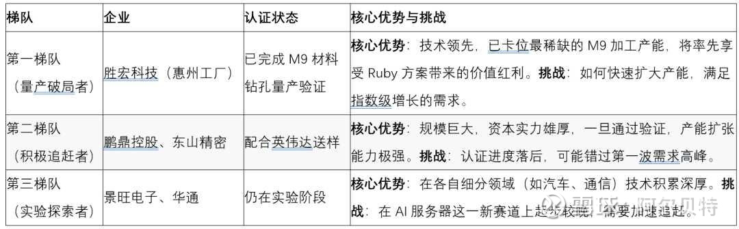根据最新信息,英伟达AI服务器PCB供应商的认证进度已形成清晰的三个梯队: