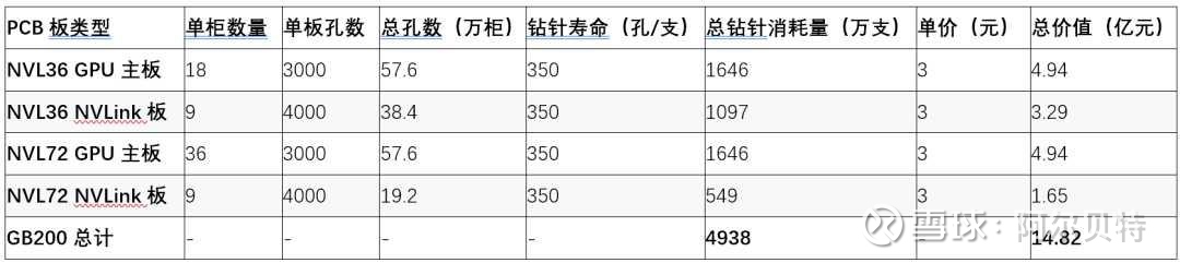 GB200方案(基准):GPU主板主要使用M8材料,钻针寿命约300-400孔。