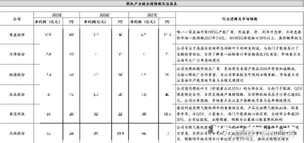 考虑到燃机主要生产商为西门子能源、三菱重工、GEV等,进而在A股中更多看的是燃机配套产业链,如:供需最为紧张、出口北美限制高、涨价预期强的HRSG、充分受益于燃机高景气度的燃机零部件(叶片、铸锻件)等。