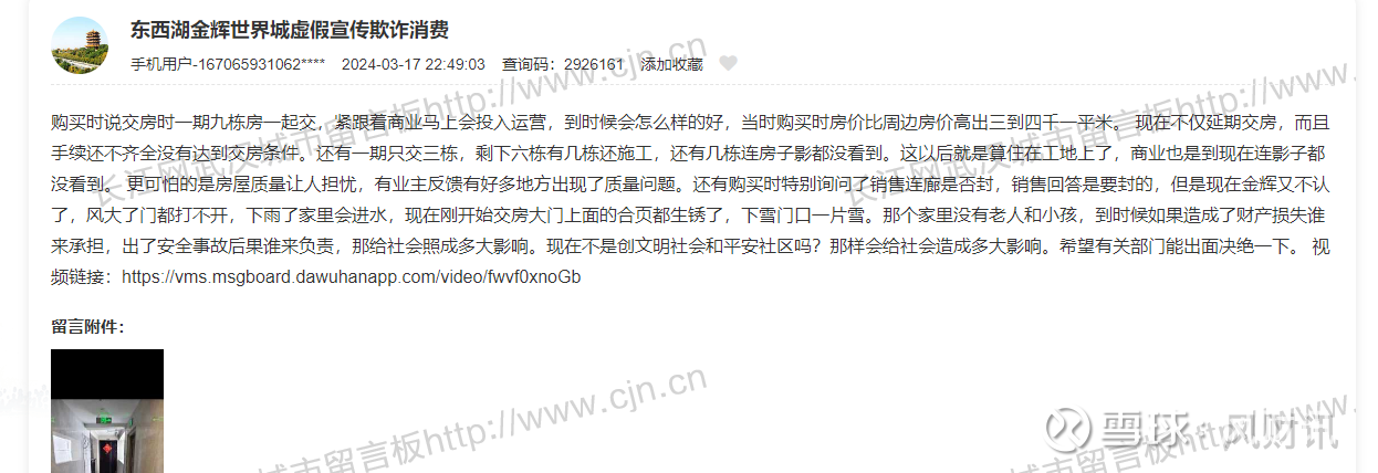 金辉已经成为武汉购房者投诉的高频房企之一,而种种的迹象也似乎昭示着金辉走向资金困难的无奈结局。