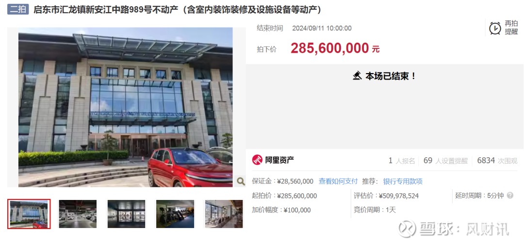 信息显示,本次拍卖资产市场评估价约5.1亿元,今年8月17日首次拍卖,起拍价约3.57亿元,未有买家出现,此次二拍起拍价下调了7139万元。