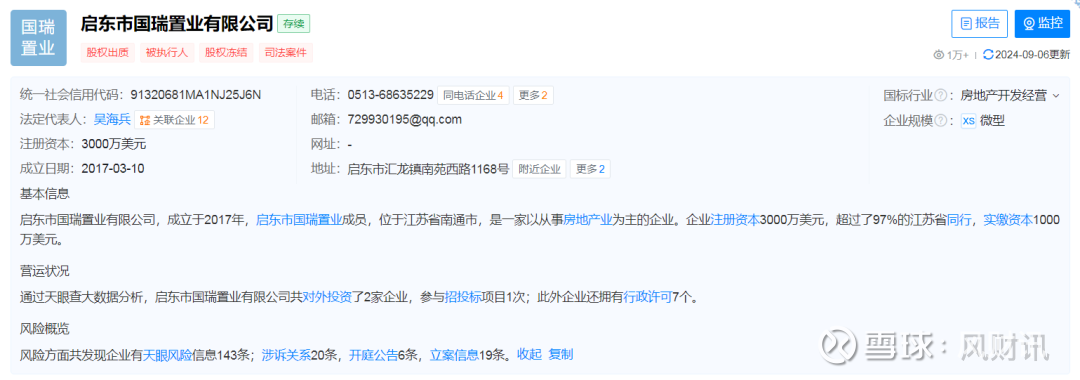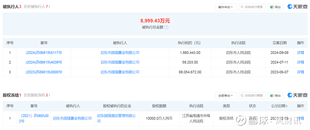 虽然酒店自身经营良好,但无奈开发商出现了资金问题。天眼查信息显示,启东市国瑞置业有限公司成立于2017年,是一家以从事房地产业为主的企业,注册资本3000万美元,实缴资本1000万美元,由通裕控股(香港)有限公司100%控股。