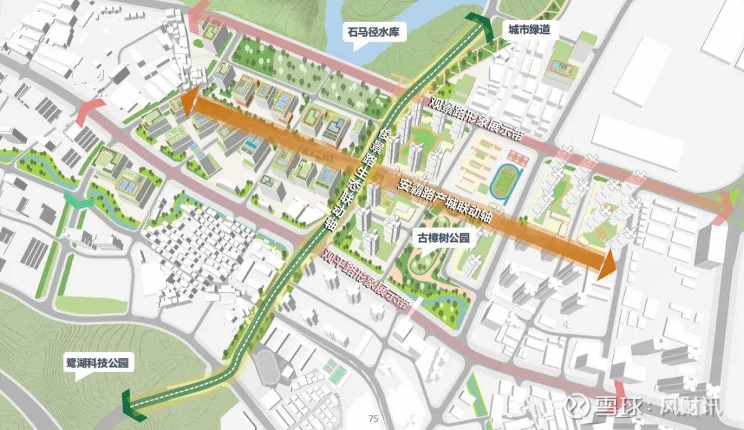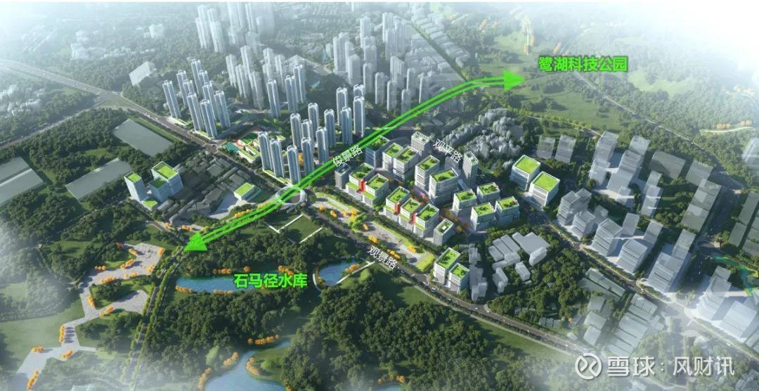 通过项目连片整备改造,未来片区将致力于打造三生融合的片区产业新高地,融入区域生态本底,实现产城融合的产业新城。其在城市设计中将有两大设计亮点呈现产城融合示范区的空间形态。