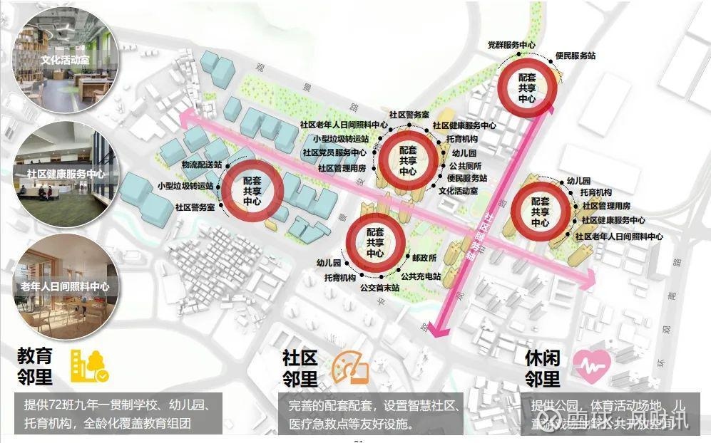 第六个方面是超级邻里。完善公套设施,打造5分钟邻里生活圈,充实社区生活体验,提供22种公共配套。如提供72班九年一贯制学校、幼儿园、托育机构,设置智慧社区、医疗急救点等友好设施,提供公园,体育活动场地、儿童游戏场地等公共开放空间。