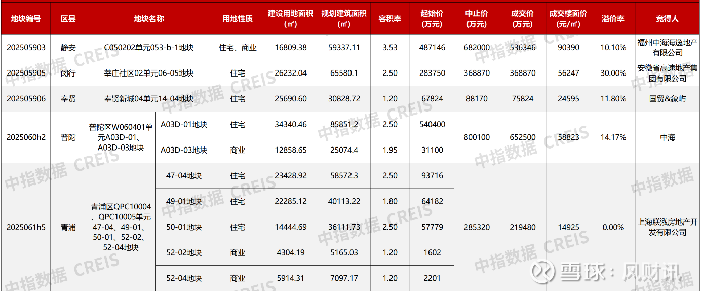 7月24日,上海第六批集中出让地块竞拍的首日,五宗地块成交总额185.3亿元,出让面积为18.63万平方米,规划建筑面积41.37万平方米。其中,4宗地块溢价成交、1宗地块底价成交。
