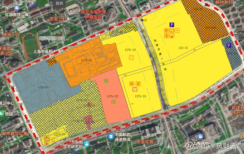 127b-24地块东至东安路、南至中山南二路、西至127b-22地块、北至127b-23地块,建设用地面积3.02万平方米,容积率2.62,地上计容建筑面积7.91万平方米,建筑高度不超过100米。