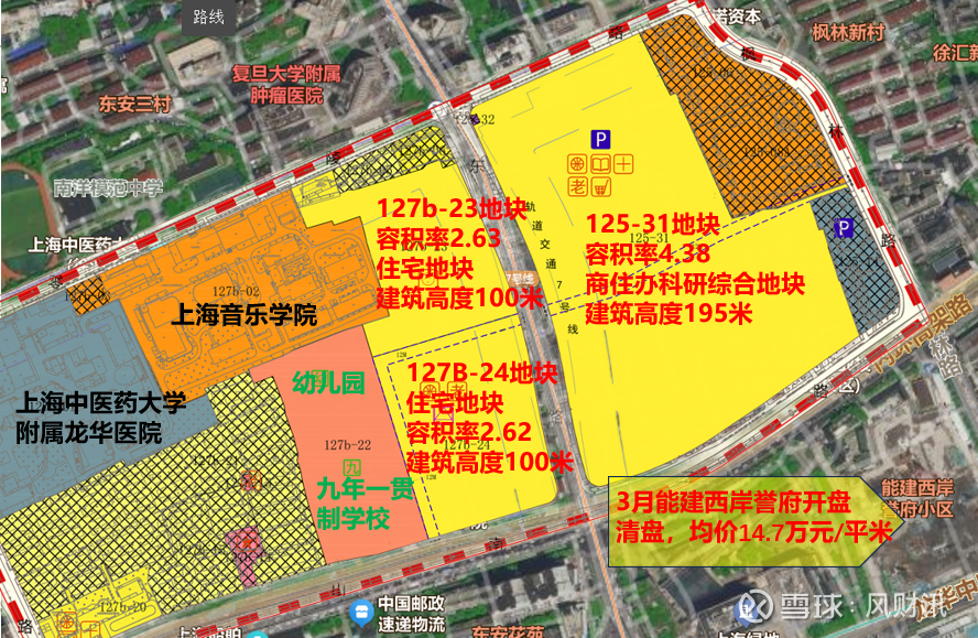 127b-23地块东至东安路、南至127b-24地块、西至上海音乐学院、北至零陵路,建设用地面积2.52万平方米,容积率2.63,地上计容建筑面积6.62万平方米,建筑高度不超过100米。