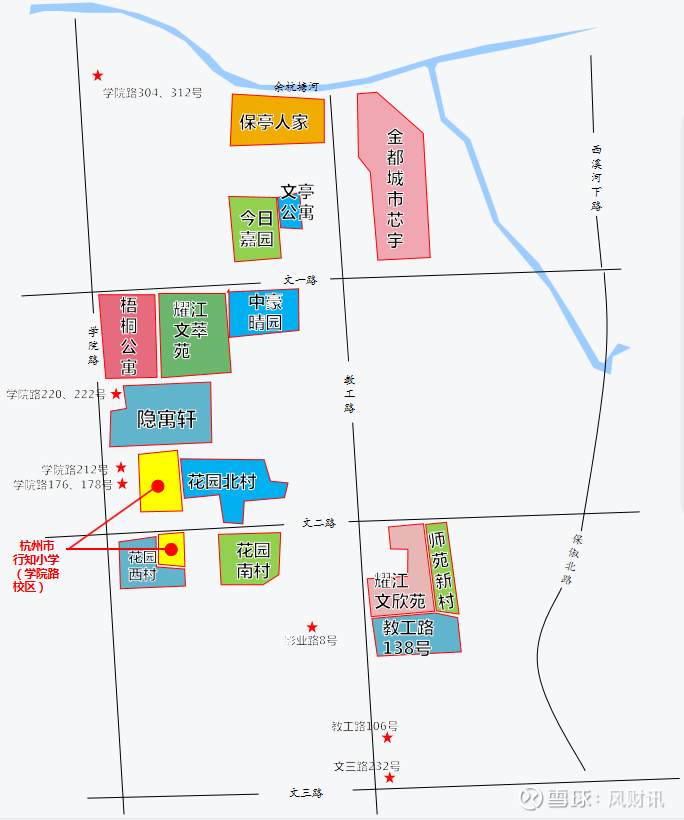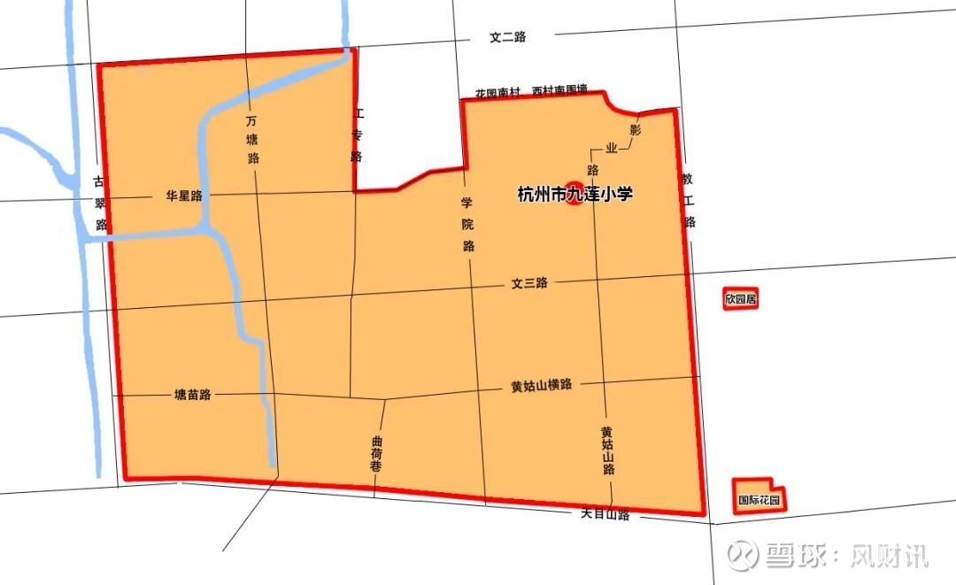 行知小学(上)和九莲小学(下)的学区划分地图(图源:杭州教育发布)