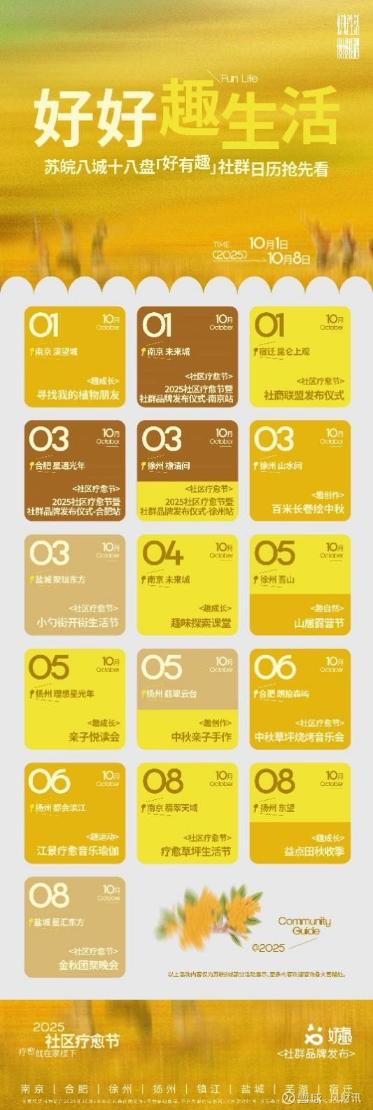 值此金秋,万科苏皖以“黄金周购房节”与“社区疗愈节”双节联动,串联八城十八盘,为业主与客户带来一场覆盖置业与生活的多重盛宴。