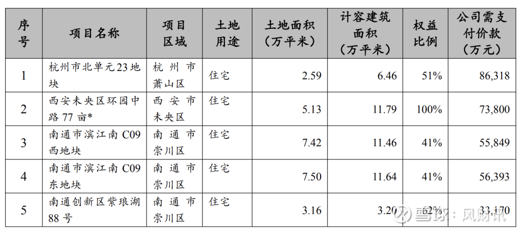 其中,杭州市北单元23地块位于杭州市萧山区,土地面积2.59万平方米,计容建筑面积6.46万平方米,需支付价款86318万元,权益比例为51%。