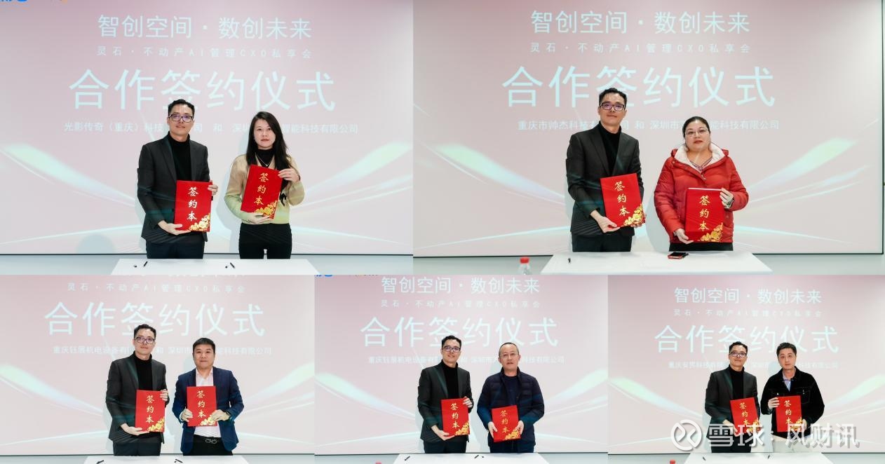 会上还举行了签约仪式,重庆市帅杰科技有限公司、光影传奇(重庆)科技有限公司、重庆安界科技有限公司、重庆源信科技有限公司、重庆钰展机电设备有限公司分别与万物云空间科技服务股份有限公司达成合作,以“灵石”产品为基础,共同拓展智慧空间管理的创新实践与应用落地。