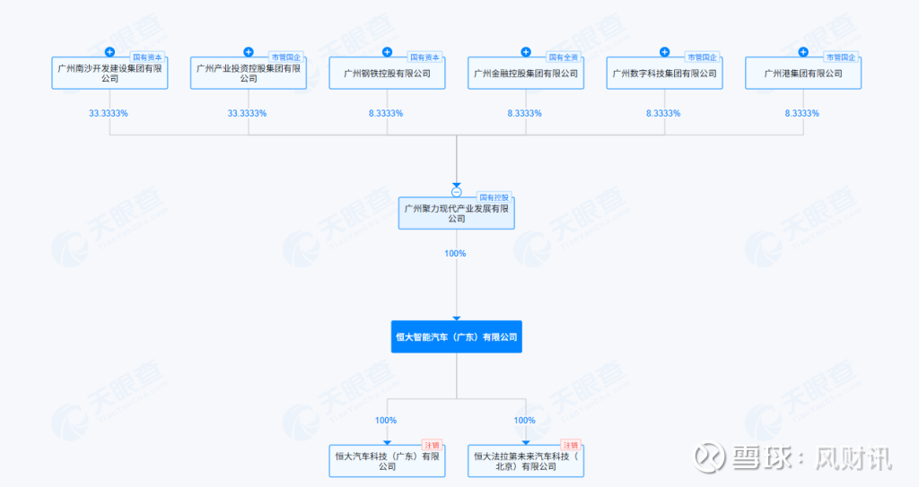 从披露的信息来看,广州聚力对恒大智能汽车(广东)有限公司的出资额为25亿元,对恒大新能源汽车(广东)有限公司的出资额为20亿元,持股比例均为100%。
