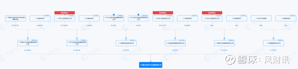 其中,广州南沙开发建设集团由广州南沙经济技术开发区管理委员会和广东省财政厅持股,持股比例分别为93.5017%和6.4983%。而广州产业投资集团由广州市人民政府办公厅和广东省财政厅分别持股91.5502%和8.4498%。