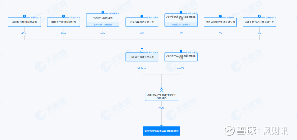天眼查披露的信息显示,河南郑风郑韵酒店管理公司为河南信淳企业管理合伙企业(有限合伙)全资子公司,国有控股企业河南资产管理有限公司持有后者99.94%股权。