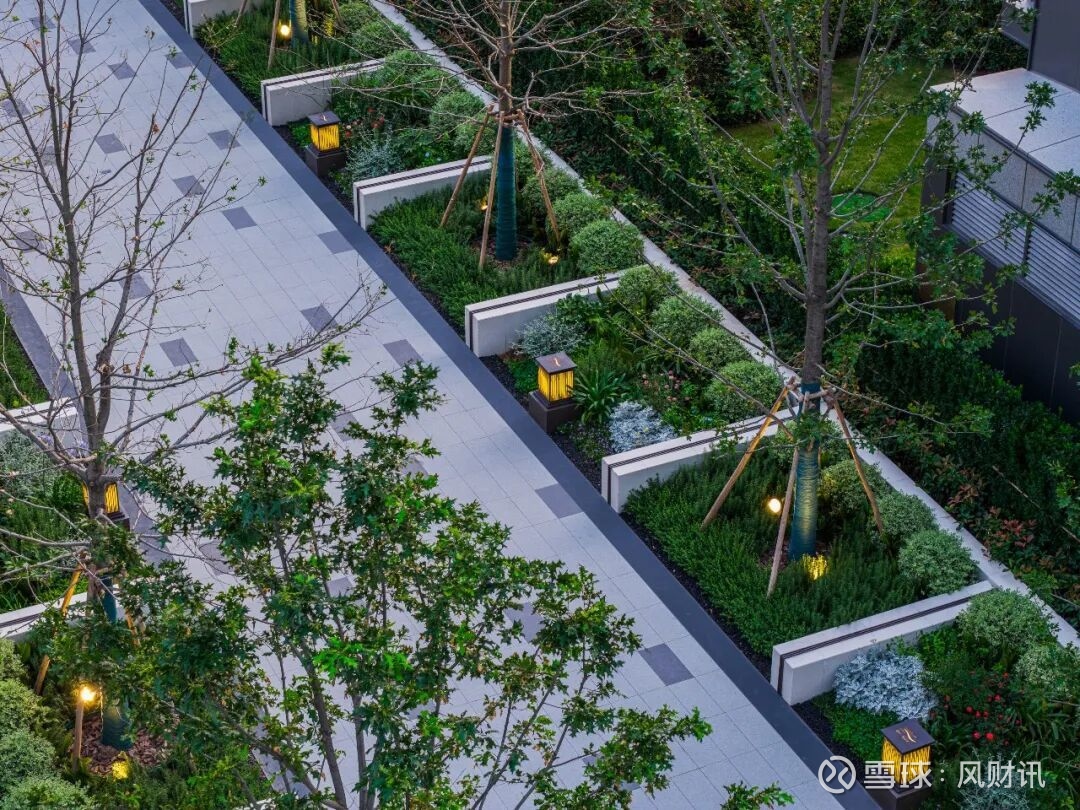 项目整体绿化率近37%,布局五进归家礼序、一道一轴,营造森系社区。漫步其中,榉树、龟甲冬青、红枫、迷迭香等各种树种植被高低错落,呈现出丰富的空间层次感。