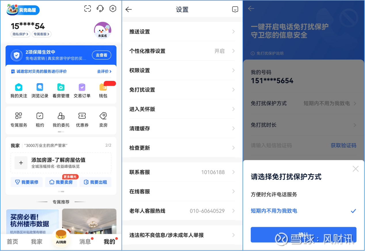 对于已经授权或者产生委托的消费者,若不想被打扰,也可以选择在贝壳APP的设置页面中选择“免打扰”时间,时间长短从1个月到12月区间均可选择。此外,消费者还能设置“方便时间允许电话服务”,比如选择18:00-22:00,则经纪人仅可在该时段进行联系。在免打扰时间内被经纪人联系,经核实后同样可获赔100元。