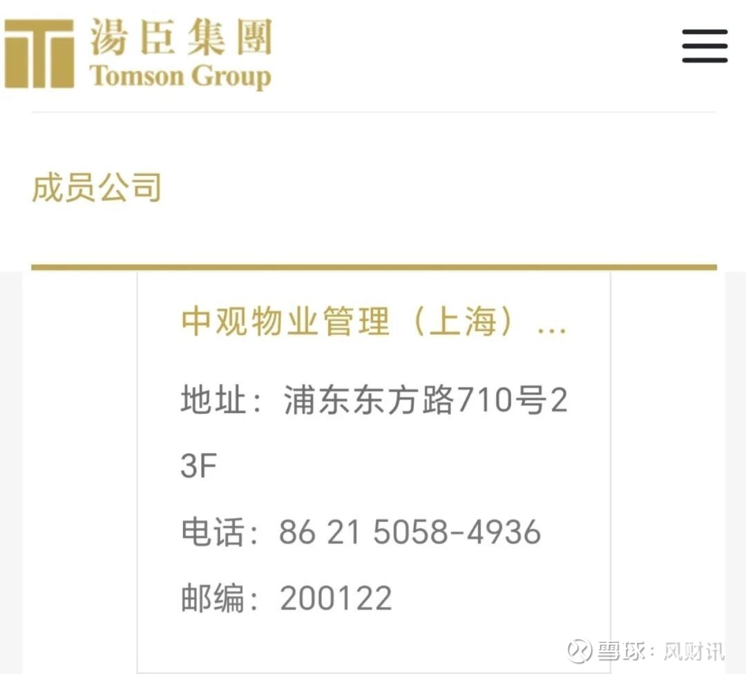 汤臣集团公司官网显示,中观物业管理(上海)有限公司(简称“中观物业”)为汤臣集团的成员公司。中观物业为汤臣一品、汤臣君品等汤臣集团开发的小区提供物业服务,也曾是汤臣湖庭花园的物管公司。