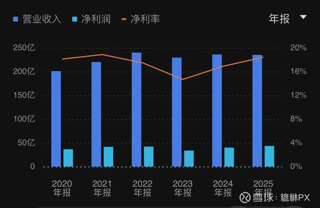 2025财年公司的营收为235亿元,最近5年平均营收为272亿元,最近10年平均营收为216亿元,我们这里假设2025财年的235亿元营收为未来的平均可持续营收的代表指标,该数值略低于近5年平均水平,但略高于近10年平均水平。