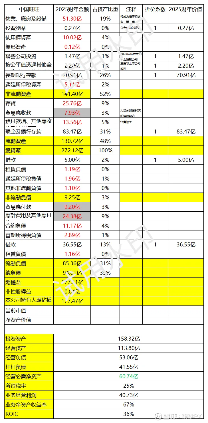 估值的第一步是对企业进行类别划分。旺旺属于“无明显护城河的普通公司”。公司在2013年之前营收和净利润年年稳健增长,2004-2013年间复合增速达分别达21%和24%,但在此之后的2014-2025年间,营收和净利润几乎原地踏步,不考虑公司未来的成长性似乎是一个符合现实的选择,但认为公司未来会出现大幅衰退,难免又有些过分悲观。