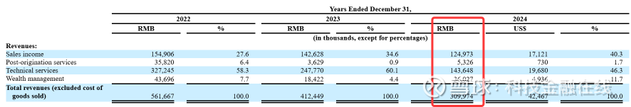 技术服务成为玖富最大的收入来源,2024年,玖富的技术服务收入为1.44亿元,同比下降41.9%,收入占比从60.1%降至46.3%。技术服务主要是与金融机构合作助贷业务。