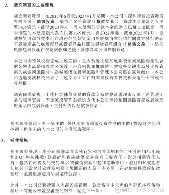 2017年6月至2023年1月,公司向第三方深圳德诚投资发展有限公司累计发放38.4亿元贷款,2022年至2023年1月,为了减少声誉风险,部分资金被用于收购陆金所平台销售的风险资产或不良资产,目的是补偿亏损的散户投资者。