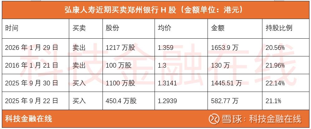 而在2025年9月22日和9月30日,弘康人寿还在增持郑州银行H股,分别增持450.4万股和1100万股。