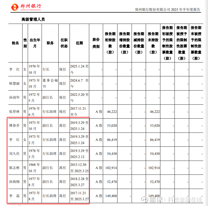 2024年11月,郑州银行迎来首位女行长,曾在邮储银行北京分行任职的李红。此后,郑州银行管理层经历了一场大换血。