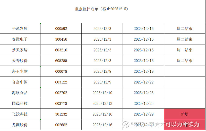 2025/12/15重点监控新增: