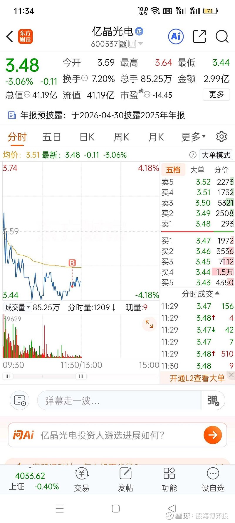 $亿晶光电(SH600537)$ 减点椰岛,又加了点亿晶,跟你杠上了,资产不差,负债也还行,又有蒙能和常州国资预期,这个价位大概率不会亏钱,缺点是拍卖价获利盘大,有融资,还没有st,股东户数太多,优点是重整快,应该也快有公告了,除了猪股的重整,还没见过这么弱的重整