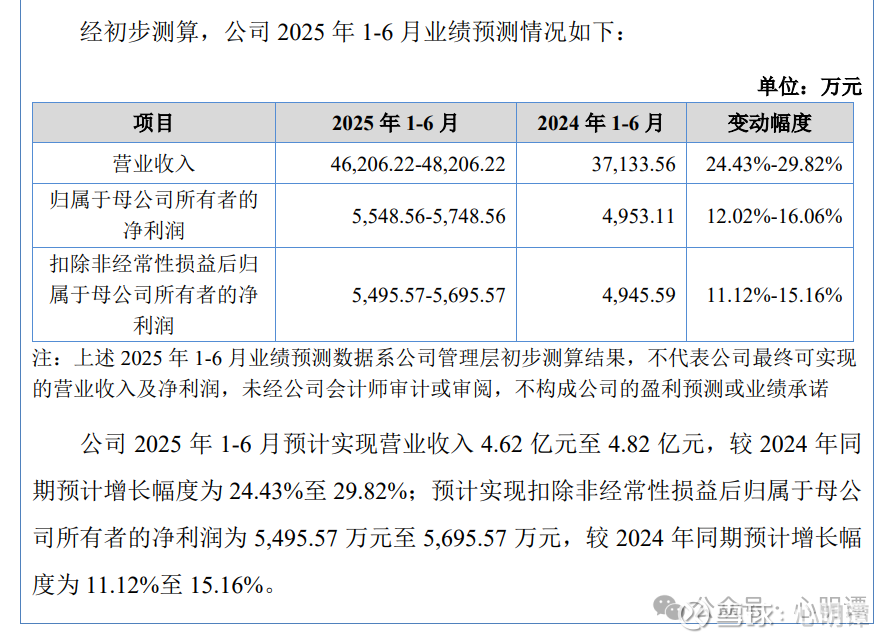 2025年上半年的业绩预测,扣非同比变动11.12%-15.16%,业绩相对比较稳定: