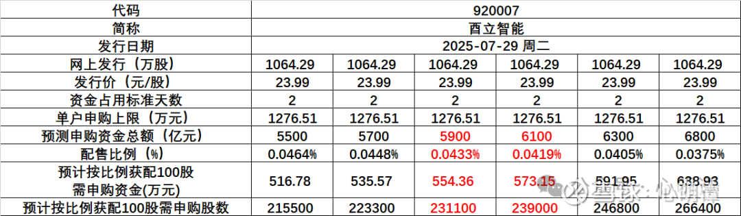 常规的周二申购,资金占用2天成本。回顾下上一次的鼎佳精密,申购资金总额6288亿,100股正股需申购331万+,1+1碎股门槛为420万+。酉立智能的起步高,顶格稍微高一些,初步拍脑袋总申购资金可能在5800亿~6000亿,100股正股大概570w左右。碎股线预计会比正股线低,就不拍脑袋了,500w+建议冲一冲,有资金的尽量多留点安全垫,不怕亏利息,就怕没有碎股亏更多拍大腿,顶格2+1没有悬念(总资金应该不太可能超6800亿)。