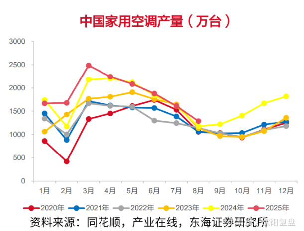 在目前宏观环境变化不大的情况下,随着明年的国补取消,空调和汽车还能保持高增长吗?厂商们也在减少空调的排产,根据产业在线数据,2025年10月到2025年12月,我国家用空调排产总量分别为1153.00万台、1296.26万台、1635.76万台,同比增速分为-17.98%、-14.70%和-8.60%。且空调库存处于近年来高位,国补过后会不会迎来一波主动去库,降低三代制冷剂的需求。