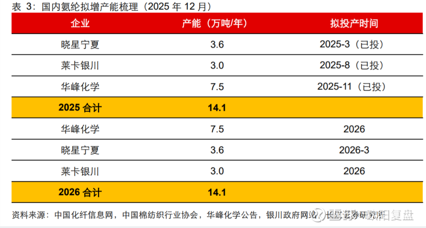 25年有14.1万吨新产能投产,26年也有14.1万吨计划投产,鉴于氨纶近年消费量增速都在11%左右,消化新产能问题不大。