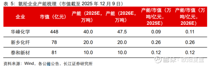025年12月15日,诸暨华海氨纶有限公司被乌海市海南区人民法院执行,被执行总金额 1.309 亿元。根据百川盈孚,截至 2025 年底,诸暨华海氨纶拥有氨纶产能 22.5 万吨/年,产能规模位居国内第二。截止2024年国内氨纶产能135万吨,国内消费量达到101.2万吨,如果诸暨华海停产,行业供给将处于紧平衡,氨纶周期有望反转。