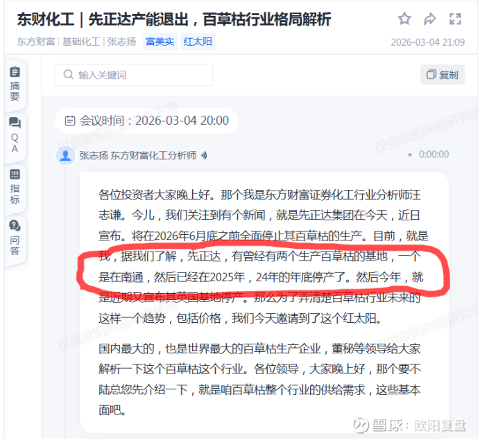 从东财的一场会议纪要里了解到早在2024年底先正达在南通的工厂就停产了百草枯折百1万吨产能,2025年上半年百草枯(42%母液)的价格见底回升到目前为止一直维持在1.6-17万/吨的相对高位。问题是红太阳在百草枯涨价的情况下2025年业绩为什么还是大幅亏损,查询资料后发现,首先我国是禁用百草枯的,产品只能出口,而出口业务通常存在3个月左右的业绩确认滞后,百草枯大幅涨价是在25年的下半年,所以业绩大概率会反映到26年的一季度。这个弹性是非常大的,公司有10万吨左右42%母液产能,每上涨1000元都能提升1个亿的利润,在华泰证券的一篇研报中明确提到红太阳的百草枯成本在1万元每吨左右,但是在东财和红太阳董秘的会议纪要中,董秘回避了成本这个问题,如果真如华泰测算的成本在1万,那就算百草枯维持现在的价格,红太阳仅百草枯这项业务1年的毛利为6-7亿。