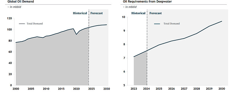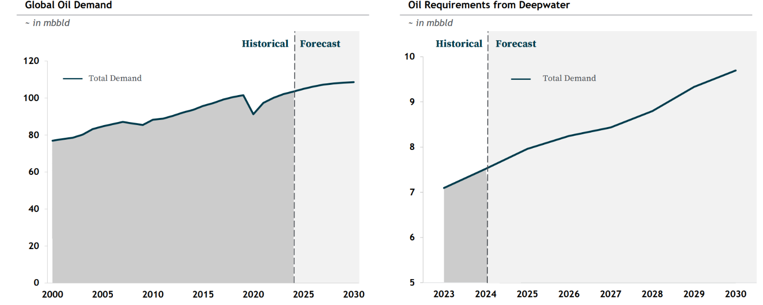 4、深水复苏:深水油具备产出稳定长期、品质优质(轻质低硫)、全周期成本适中(和页岩油接近甚至更低)的特点,在陆上油田逐渐衰减的背景下越发具备吸引力。根据RIG预计,预计到2027年,深水项目的批准量将增加156%。2025-2028年深水capex增加33%。